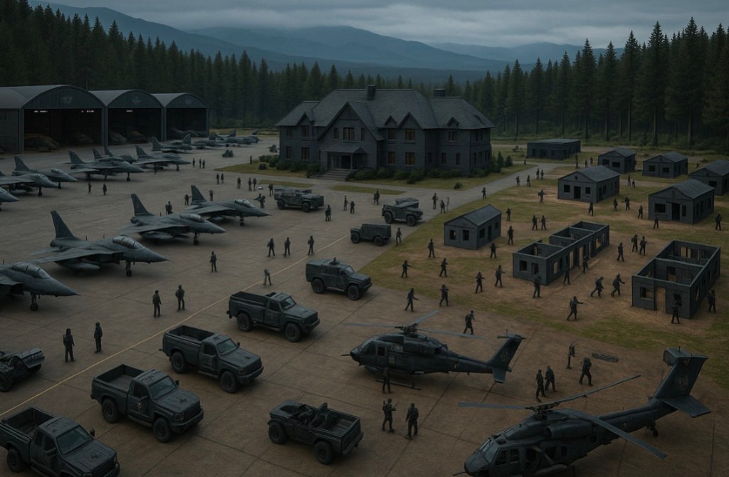 This fortified base serves as the operational heart of the Wolves—housing advanced aerial assets, rapid-response ground units, and elite operators trained for high-risk missions across the globe.